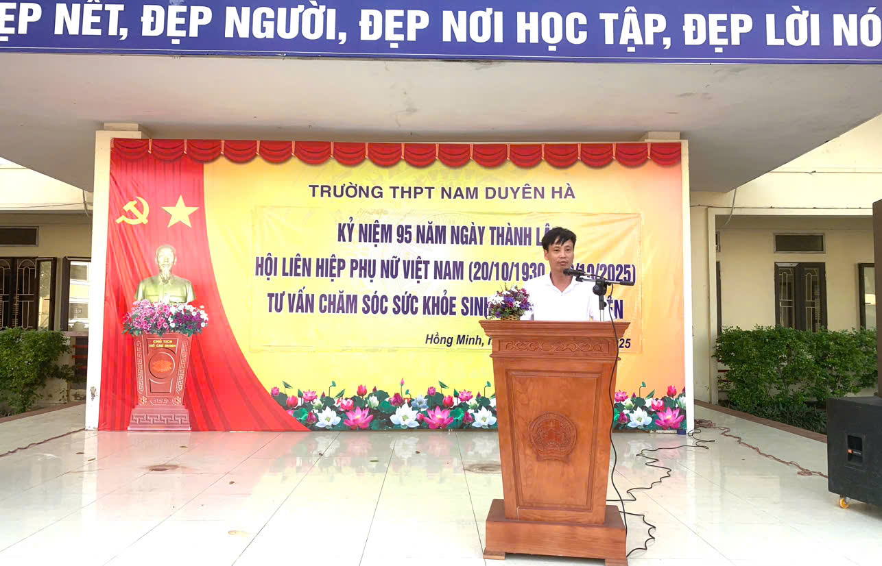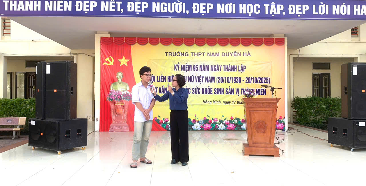 Nhân dịp kỷ niệm 95 năm ngày thành lập Hội Liên hiệp Phụ nữ Việt Nam (20/10/1930 - 20/10/2025), sáng ngày 17/10/2025, Trường THPT Nam Duyên Hà phối hợp với Chi cục Dân số - Trẻ em tỉnh Hưng Yên, Trung tâm Y tế Hưng Hà tổ chức chương trình truyền thông chăm sóc sức khỏe sinh sản vị thành niên cho học sinh toàn trường.